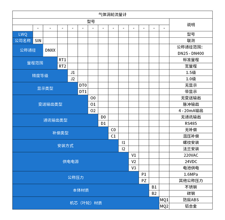 產(chǎn)品簡介:LWQ-SIN系列氣體渦輪流量計是集溫度、壓力、流量傳感器和智能流量積算儀于一體的新一代高精度、高可靠性的氣體精密計量儀表,具有出色的低壓和高壓計量性能。