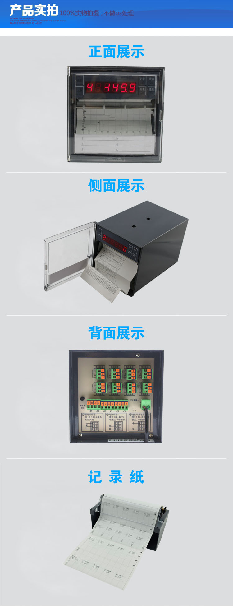 產(chǎn)品簡介:SIN-R1000有紙溫度記錄儀最多具有8路輸入通道,2路模擬量輸出,通道之間采用點(diǎn)點(diǎn)隔離;均可直接選擇接收多種熱電偶、熱電阻、壓力變送器、電壓、電流信號,并可對被測信號進(jìn)行數(shù)字顯示及進(jìn)行趨勢記錄和數(shù)字記錄,能在本身打印的120mm寬的紙格上同時記錄刻度值、時間及每一個信號的曲線,并將通道號印在各通道的軌跡旁。