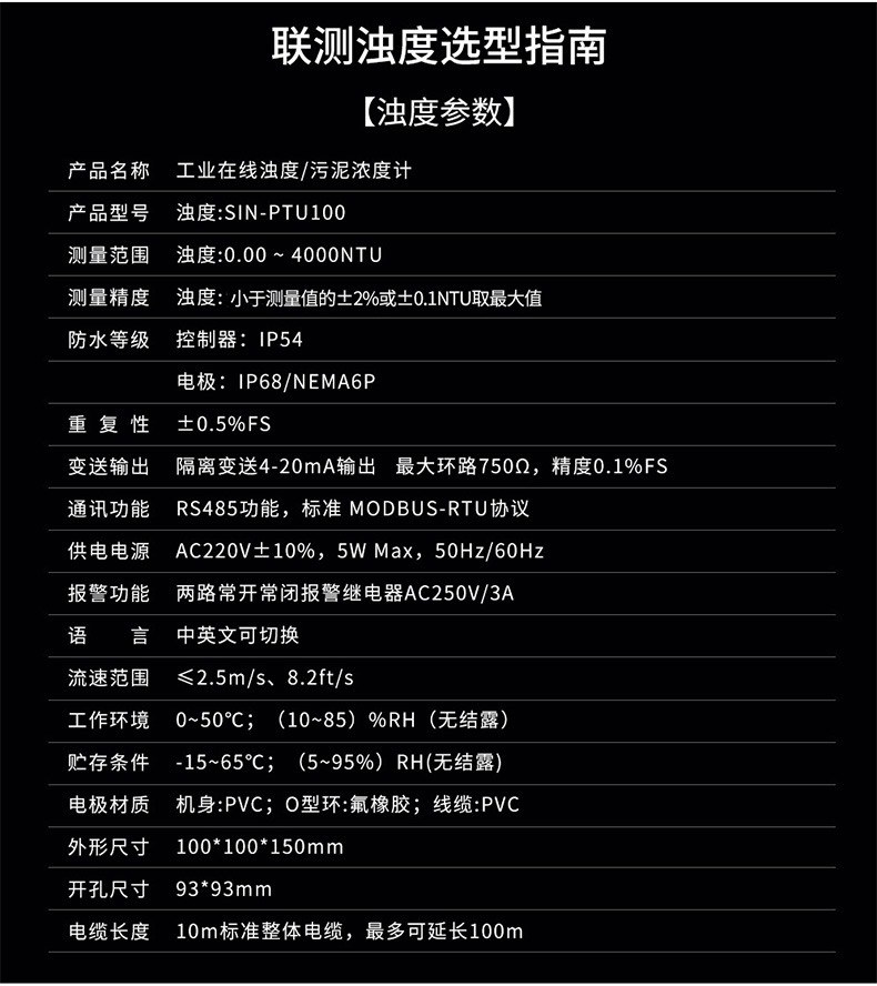 產品簡介:聯測SIN-PTU100在線濁度分析儀內置微處理器,適用于于污水廠、自來水廠、水站、地表水、工業等領域濁度監測,例如:污水廠沉淀池、造紙漿液池、提升泵站、氧化溝濁度測量等。